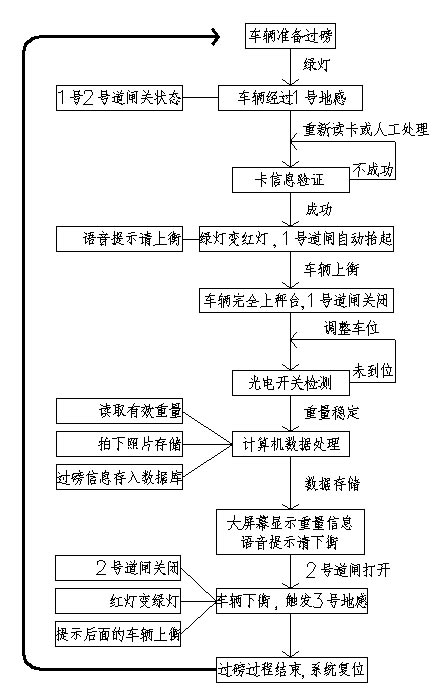 RFID卡自動稱重系統(tǒng)自動識別車輛車牌號碼,方便快捷。要求:場內(nèi)對車輛管理較嚴格,車牌的完整度和清潔度。過磅原理流程如下:
