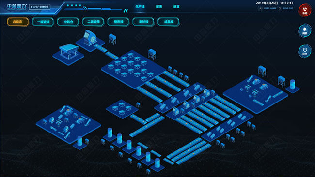 3、砂石骨料生產(chǎn)設(shè)備自動化控制系統(tǒng)即礦山生產(chǎn)管理系統(tǒng),提供人機交互界面,可對粉碎設(shè)備各組合體系做出啟停、聯(lián)動參數(shù)以及守護、報警參數(shù)的設(shè)置,提供設(shè)備故障報警實時查詢。
