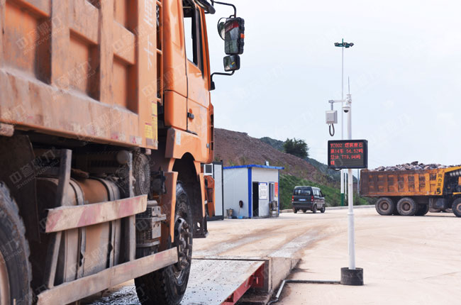 監(jiān)控+音響提醒司機(jī)規(guī)范停車稱重,LED屏實(shí)時顯示稱重?cái)?shù)據(jù)