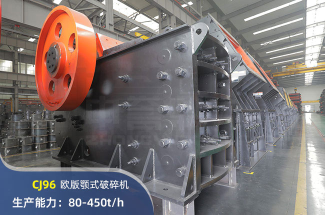 CJ96顎式破碎機,俗稱96鄂破,進料口尺寸930×580mm,進料粒度在480mm,出料60-175mm,電機90kw,時產(chǎn)量80-450t/h。