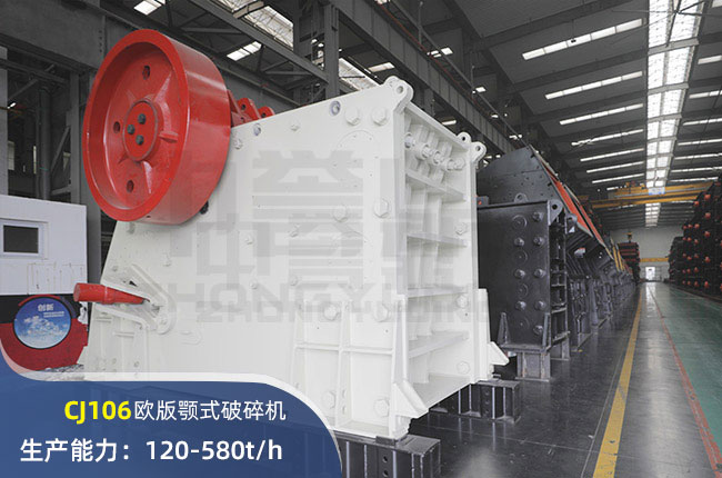 CJ106歐版顎式破碎機的粒度出料大小在70-200mm,破碎腔采用對稱“V”形結(jié)構(gòu),破碎機深無死區(qū),因其結(jié)構(gòu)簡單、工作靠譜、破碎比大,很受市場上用戶的認可。