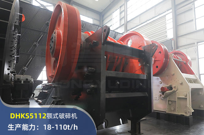 DHKS5112顎式破碎機(jī)進(jìn)料口尺寸1300×300mm,進(jìn)料粒度240mm,出料大小20-90mm,電機(jī)功率75kw,時(shí)產(chǎn)量在110噸。