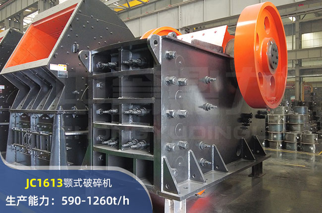 JC1613顎式破碎機(jī)進(jìn)料口尺寸1600×1300mm,進(jìn)料粒度≤1110mm,出料大小≤175mm,電機(jī)功率280kw,時(shí)產(chǎn)1260噸左右。