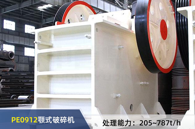 PE0912顎式破碎機(jī)屬中等偏小型的破碎機(jī),這里指的并非PE900×1200鄂破,這個(gè)型號(hào)其給料口尺寸是870×1200mm,出料口尺寸70-175mm,每小時(shí)生產(chǎn)能力在205-787噸,配置的是160千瓦的電機(jī),設(shè)備重量是29.5噸。