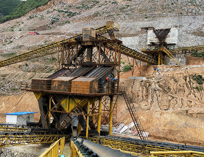 設(shè)備配置:ZG0938振動給料機(jī)+69顎式破碎機(jī)+1210雙腔硬巖破(1315反擊式破碎機(jī))+圓振動篩+皮帶輸送機(jī)
