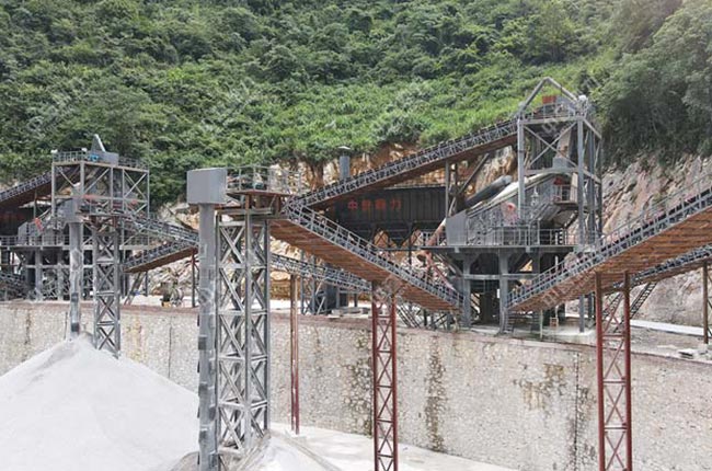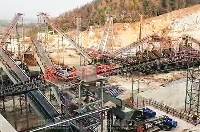 設備配置:振動給料機ZGC2050、重型錘式破碎機PCZ1620、整形式破碎機PC1220、雙轉子制砂機ZSJ1213、振動篩3YKQ2460、輸送機。
