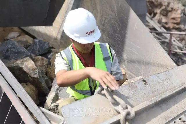 在生產(chǎn)線現(xiàn)場,中譽鼎力安裝工程師針對唐總反映的近幾天進料時有點卡料的情況,及時檢查破碎機和皮帶機運行狀態(tài),查看原材料,現(xiàn)場為客戶解決問題。