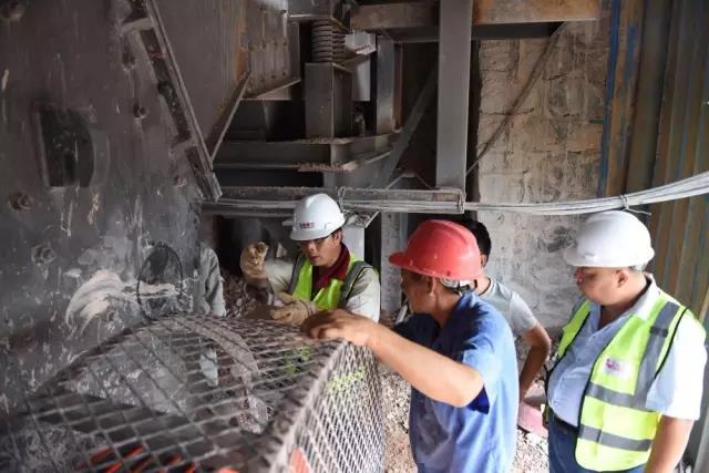 現(xiàn)場,鼎力安裝工程師、銷售經(jīng)理、售后服務(wù)經(jīng)理了解到該生產(chǎn)線的產(chǎn)量沒有達(dá)到設(shè)備時產(chǎn)量時,立即開始檢測設(shè)備、查找原因。經(jīng)過查看用戶的破碎原材料,發(fā)現(xiàn)原材料里含有硅巖,加劇了破碎機(jī)錘頭磨損程度,進(jìn)而影響產(chǎn)量。建議在破碎前將硅巖層剝離掉,避免錘頭磨損嚴(yán)重的情況再次出現(xiàn)。
