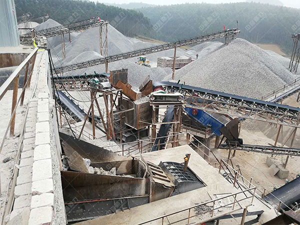 原料堆、ZSW380-95震動(dòng)喂料機(jī)、PE600-900顎式破石機(jī)、PF1210反擊破、2YK1854震動(dòng)篩、B800-18米傳送機(jī)、B800-22米傳送機(jī)、HX-09細(xì)碎機(jī)、B800-10米傳送機(jī)、B650-23米傳送機(jī)、B500-10米傳送機(jī)、XS2914洗沙機(jī)。
