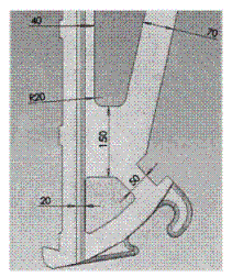 原始的機構尺寸如下圖1,分別對額板處、額板背面,肘板銜接處、出料口出的尺寸進行優(yōu)化,為肘板的安系數(shù),肘板銜接處的尺寸限尺寸定為:Xmin=50毫米,其它幾個尺寸分別根據(jù)邊界條件進行優(yōu)化,通過6次迭代,取得優(yōu)化后的結構尺寸如下圖2。
