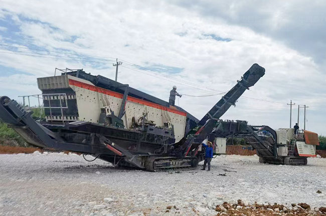 “給料+破碎+篩分機(jī)”屬于移動(dòng)破碎篩分站,集給料機(jī)、破碎機(jī)、篩分機(jī)、皮帶機(jī)于一體,可以自成一條生產(chǎn)線,實(shí)現(xiàn)破碎篩分作業(yè),可直接生產(chǎn)不同規(guī)格的石子骨料。