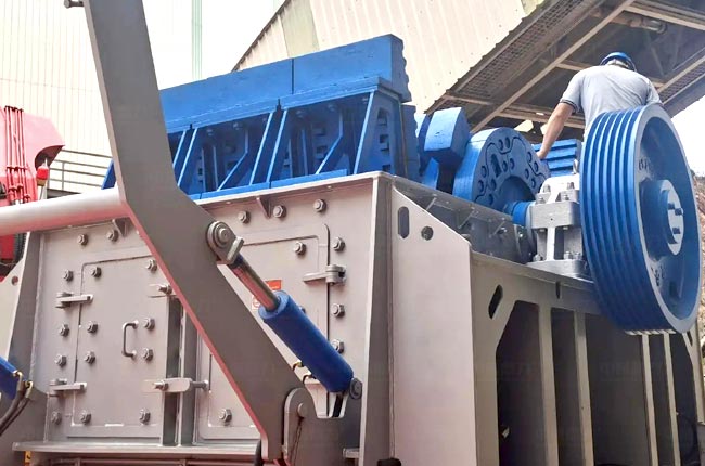 通過液壓系統(tǒng)調(diào)節(jié)篦架,可以改變出料大小,解決錘頭、篦板因磨損對出料粒型造成影響(調(diào)節(jié)定位篦架還配備了絲桿和螺母,解決液壓缸受力,延長使用壽命);