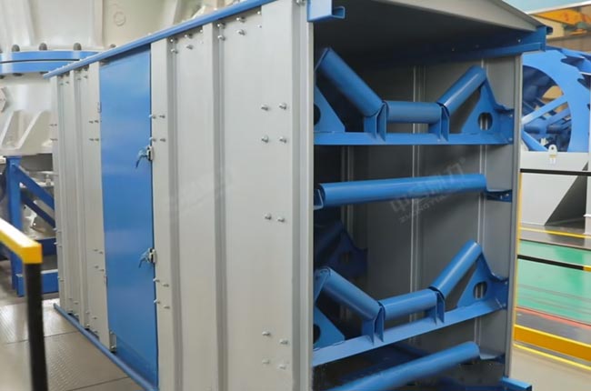 中譽(yù)鼎力自主研發(fā)的箱式皮帶輸送機(jī),將皮帶輸送機(jī)和生產(chǎn)線設(shè)備部密封在一起,不僅有限避免揚(yáng)塵外溢,還能減少除塵器使用數(shù)量,生產(chǎn)線設(shè)備投資、后期能耗以及維護(hù)成本。