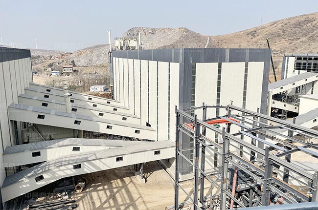 上面是項目正在施工中的實拍照片,可以看出生產(chǎn)線的大致進(jìn)展情況,各個生產(chǎn)設(shè)備已經(jīng)運送至施工現(xiàn)場,并且安裝固定到既定的位置,儲料倉的主體基本建設(shè)完成,皮帶輸送機的鋼支架也都搭建完成。