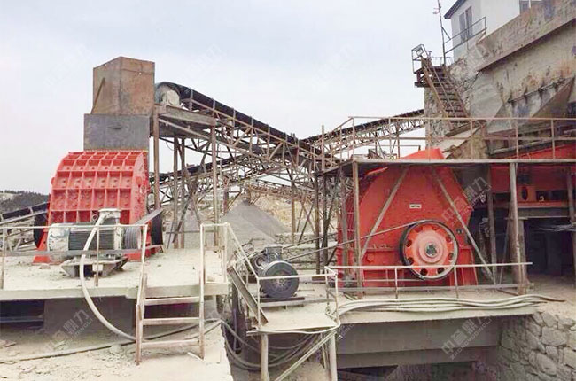 該項(xiàng)目采用的是露天生產(chǎn)模式,配置了兩臺(tái)破碎設(shè)備,一破將石灰石粗碎,二破將粗碎后的石灰石整形細(xì)碎,生產(chǎn)工藝合理簡(jiǎn)單,每小時(shí)可以處理600-800噸石灰石,產(chǎn)量大,生產(chǎn)料類品種多。