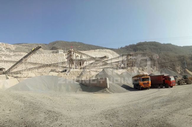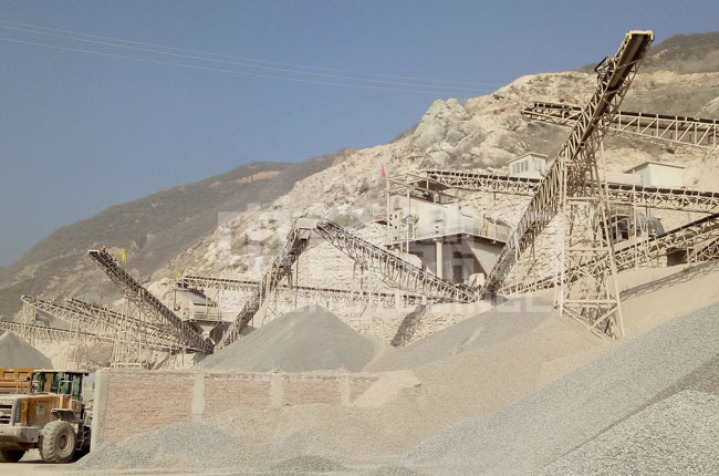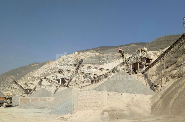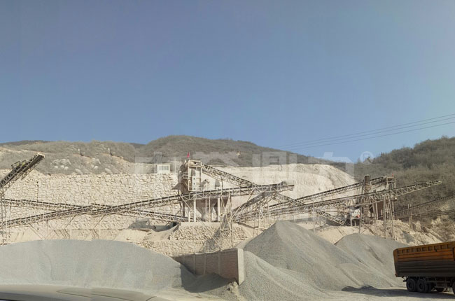 該項目是2017年投入生產(chǎn),是一條生產(chǎn)12、13等石子骨料的石灰石粉碎生產(chǎn)線,主要采用的是1615型頭道破碎機(jī)+1216整形破+振動篩。