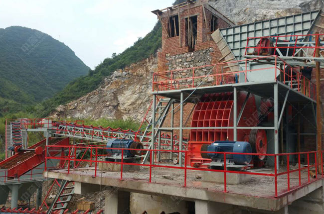 該時(shí)產(chǎn)800噸的石灰石破碎生產(chǎn)線是中譽(yù)鼎力建造的,采用的是PCZ1615重錘破、PCZ1216錘式破碎機(jī)、3YKZ3070振動篩。生產(chǎn)80-200mm、40-80mm兩種規(guī)格的石子料。
