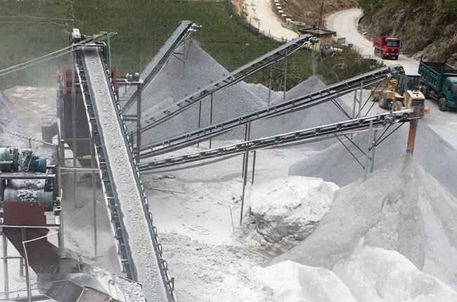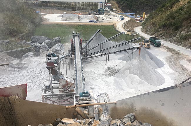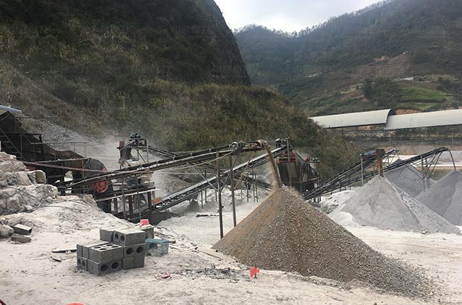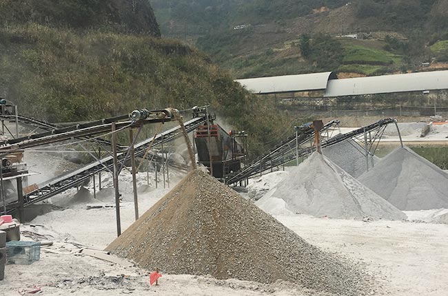 廣西南寧時(shí)產(chǎn)200噸石子生產(chǎn)線選用除土型給料機(jī)、一臺錘式破碎機(jī)、一臺4層篩網(wǎng)的振動篩,生產(chǎn)線生產(chǎn)4種不同規(guī)格的石料。