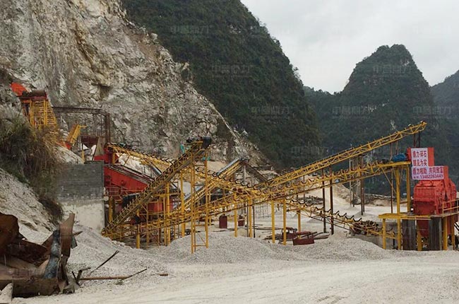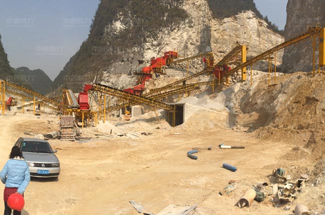 廣西河池這條時(shí)產(chǎn)800-1000噸建筑骨料生產(chǎn)線屬于階梯式設(shè)計(jì)方案,原料由棒條給料機(jī)預(yù)先篩分,其余原料通過PCZ1615錘式破碎機(jī)破碎,還有反擊破設(shè)備對(duì)不符合要求的石料進(jìn)行細(xì)碎加工,生產(chǎn)的骨料規(guī)格多,粒型好。