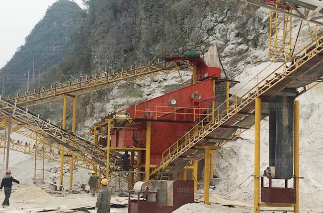 該項(xiàng)目給料機(jī)具備于篩分功能,可以于篩分石料中的泥土,碎石等雜質(zhì),氣候通過振動(dòng)篩篩分出泥土雜質(zhì)及碎石骨料。