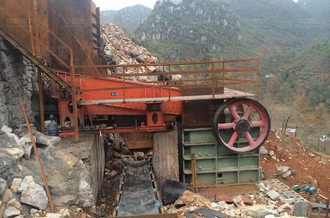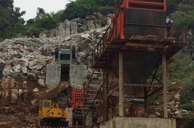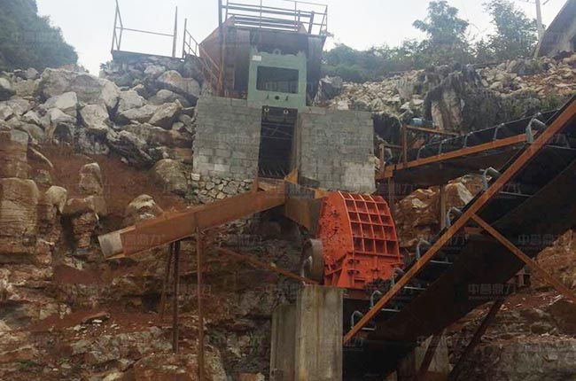 該項目位于廣西河池,選用時產(chǎn)100-160噸的PCZ1308重錘破碎機(jī)做二破使用,一臺4層YK2260振動篩用于分選4種不同規(guī)格的石料。