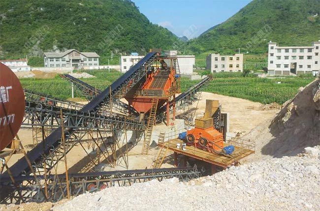 該砂場案例位于貴州安順平壩地區(qū),于2016年建成投產(chǎn),原料是山石,在工藝上選用了重錘破+雙轉(zhuǎn)子制砂機(jī)的破碎制砂模式,一小時(shí)可以生產(chǎn)300噸機(jī)制砂,項(xiàng)目占地面積小,總投資較低。