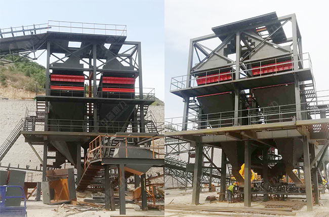 該產線是繼時產3000噸砂石生產線項目之后,河北武安白沙石料廠再次與河南中譽鼎力公司合作,建成的一條日產8000噸左右的石料生產線,破碎設備上選擇了PCZ1815和PC1216型號的錘式破碎機,破碎比大,出料粒型好。