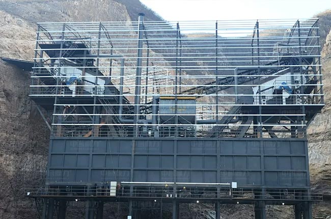 河北涉縣該項目立體式骨料生產線設計,具有生產結構緊湊,場地優(yōu)化等特點。振動篩設備安裝于料倉頂部,大大節(jié)省安裝、輸送、結構等成本。