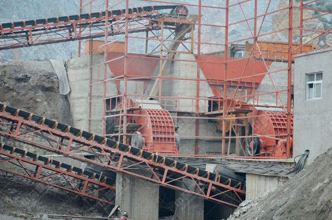 滎陽蒙陰石料廠時產(chǎn)700噸砂石生產(chǎn)線主要采用雙錘破聯(lián)合生產(chǎn)工藝,破碎設(shè)備采用兩臺中譽(yù)重型錘式破碎機(jī),形成了一個閉路系統(tǒng),既提高了時產(chǎn),又了物料的破碎程度在適合的粒度要求范圍;為了骨料潔凈度,頭道工序喂料端采用于除土的篩分除土中譽(yù)振動給料機(jī)。相比顎破加反擊破的工藝,采用上述工藝及裝備,裝機(jī)容量輕,機(jī)器維修便利,投資少,見效快,并且生產(chǎn)的成品骨料顆粒具有形狀好、潔凈度高、石子強(qiáng)度高等優(yōu)點。