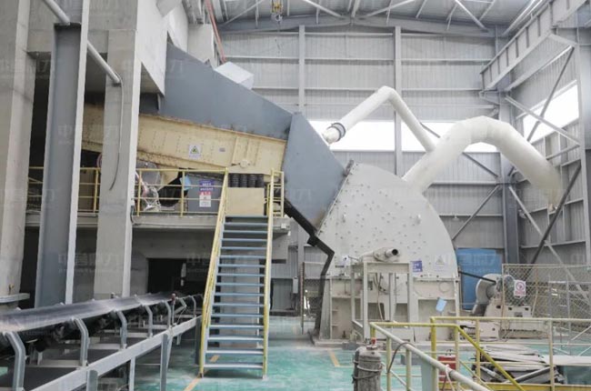 恒源礦業(yè)二道莊年產(chǎn)600萬噸砂石骨料生產(chǎn)項(xiàng)目,占地308畝,選用了當(dāng)時(shí)產(chǎn)量較大的DLPCZ2125重型錘式反擊破碎機(jī)及配套設(shè)備,設(shè)備顏色為定制白,據(jù)孫廠長介紹“半年300萬噸,錘頭還沒換過”。