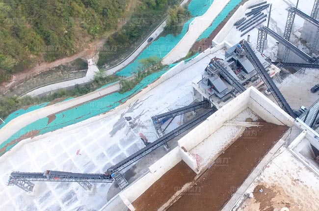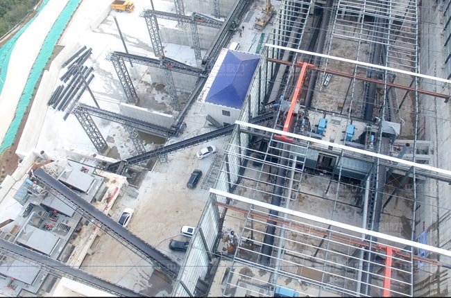 該封閉式砂石料場雙線并行,兩臺DLZG振動給料機、兩臺DLPCZ重型錘式反擊破碎機、兩臺DLPC整形式破碎機和多臺DLYKZ重型振動篩及配套輸送、除塵等設(shè)備。