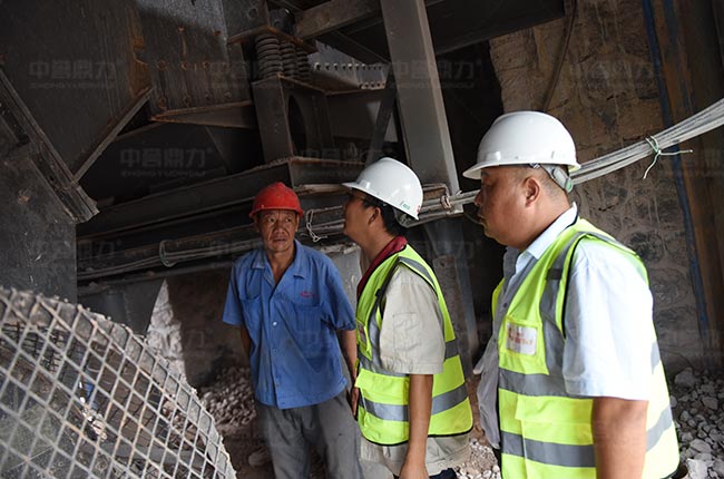 2017年8月鼎力售后萬里行來到楓林采石場溝通生產(chǎn)線運(yùn)營情況