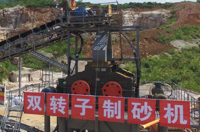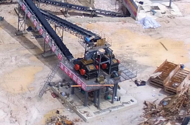 該機(jī)制砂生產(chǎn)線屬于改造項目,生產(chǎn)線采用原有500×750顎破機(jī),新增我公司DLZSJ1213雙轉(zhuǎn)子制砂機(jī)、3YKZ2470振動篩等設(shè)備,實現(xiàn)時產(chǎn)300噸,日產(chǎn)三千噸的砂石骨料。