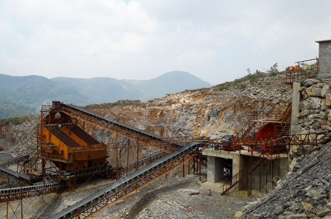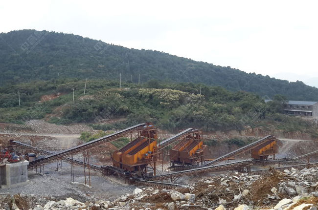 這條時(shí)產(chǎn)1200噸的碎石生產(chǎn)線,加工工藝較為簡(jiǎn)單,主要采用錘式破碎機(jī)為主要碎石設(shè)備,生產(chǎn)0-5,5-10,10-20,20-30等多種不同規(guī)格的石料。