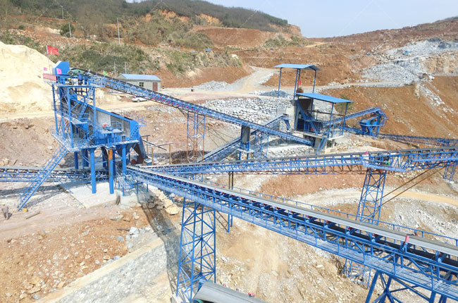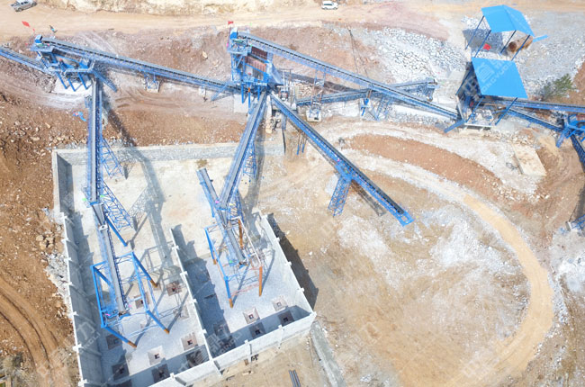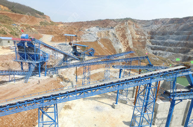 該項目2017年3月10日投產(chǎn),加工螢石,生產(chǎn)2-5mm、5-8mm化工廠使用的物料。依據(jù)螢石礦特性,為其配置了“69顎破+1615錘破+振動篩”及其余配套設備。