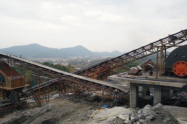 江西新余某石料廠建設(shè)的碎石生產(chǎn)線屬于300噸小型生產(chǎn)線,采用一臺(tái)一次成型的PCZ重型錘式破碎機(jī),設(shè)計(jì)有3臺(tái)振動(dòng)篩,分三道篩分工藝,成品骨料規(guī)格多。