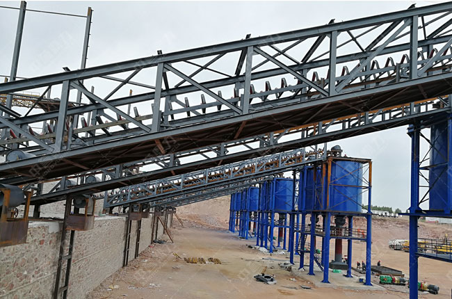 整個(gè)加工流程是:石灰石由除土篩預(yù)先除土篩分,得到清潔度較高的石灰石再由1820破碎機(jī)進(jìn)行破碎,4臺(tái)并排安裝的3070振動(dòng)篩進(jìn)行篩選,再由1220整形錘破進(jìn)行二次整形破碎,4臺(tái)并排安裝的3070振動(dòng)篩進(jìn)行篩選。