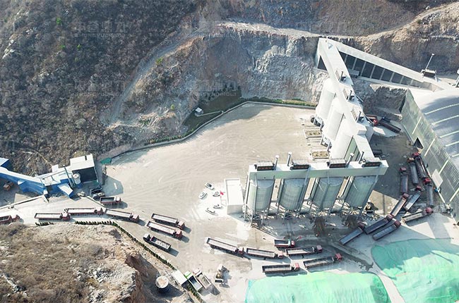 該項目主破采用PCZ1615重錘式破碎機,整形破,制砂機及整套礦山設備,整個工藝進行了封閉式環(huán)保設計,還配置了自動裝車系統(tǒng),司機刷卡后,散裝機放料進行自動裝車,大大提高了裝車速度。