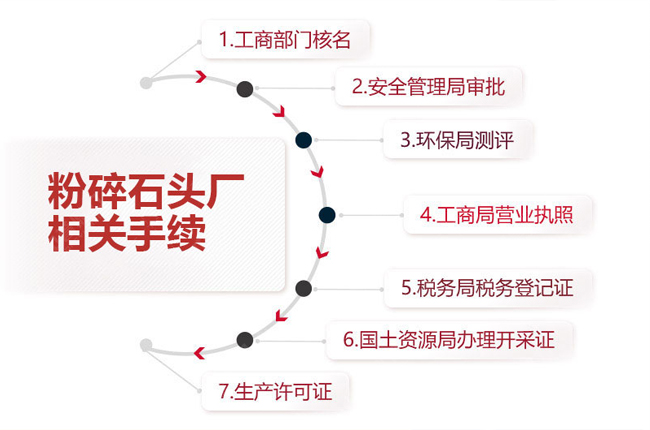 【碎石場(chǎng)需要什么手續(xù)?碎石生產(chǎn)線設(shè)備有哪些?】想要辦一個(gè)碎石場(chǎng),齊的合法手續(xù)是主要,假如沒(méi)有辦理完整的合法手續(xù),則視為非法生產(chǎn),后期將面對(duì)停廠或許罰款的狀態(tài),因此提早要辦理好齊的手續(xù),那么開(kāi)一個(gè)碎石場(chǎng)都需要哪些手續(xù)呢?下面一張圖讓您掌握: