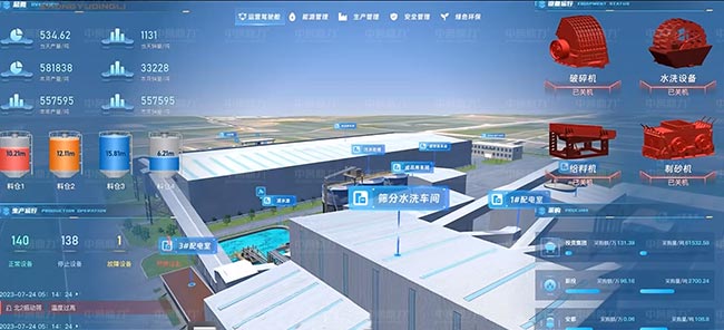 大屏實景三維展現(xiàn)整個廠區(qū),集生產(chǎn)、環(huán)保監(jiān)測、視頻監(jiān)控、礦山設(shè)備等數(shù)據(jù)進行綜合監(jiān)測分析,對各類異常事件進行可視化預警,促使管理者對砂石廠管理變得更加快捷高效、安全有序。