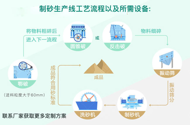 【鵝卵石制砂機生產(chǎn)線設(shè)備配置方案】鵝卵石制砂機生產(chǎn)線一般運用的有粉碎機械、制沙機械、洗沙機械、篩選分級機械以為他配套設(shè)備,粉碎機械選用顎破機對大塊的物料做出初級破碎,再由圓錐碎石機或PF反擊破碎機做出整形破碎機,再由篩機篩選符合機制砂設(shè)備送料粒度的石子運送到機制砂設(shè)備做出制沙,再由洗砂機洗去附著在沙子上的灰塵、污垢等異物,提高沙子的干凈度。
