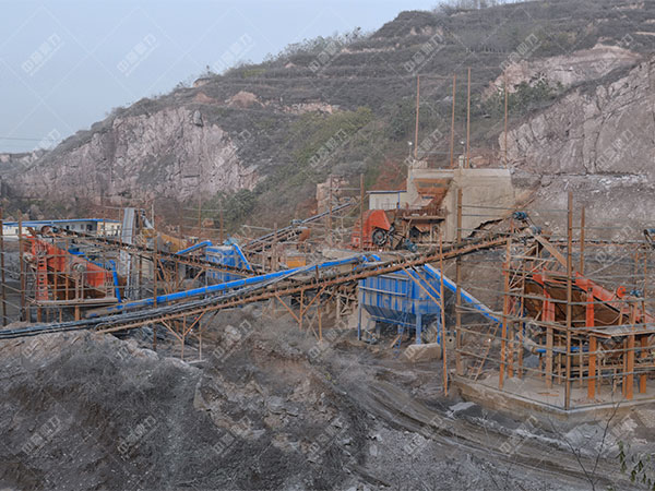原料堆內(nèi)的巖石在振動(dòng)喂料機(jī)的影響下,被均勻、持續(xù)的送入圓錐碎石機(jī)進(jìn)行破碎解決,經(jīng)破碎后的巖石由運(yùn)輸機(jī)運(yùn)輸?shù)剿樯皺C(jī)進(jìn)行制砂生產(chǎn)解決,制砂后的巖石進(jìn)入篩機(jī)進(jìn)行篩選分級(jí),合格的則進(jìn)入洗砂機(jī)進(jìn)行清洗解決,不合格的返回碎砂機(jī)進(jìn)行又一次制砂生產(chǎn),洗沙后的巖石在運(yùn)輸機(jī)的影響下輸出即為成品。
