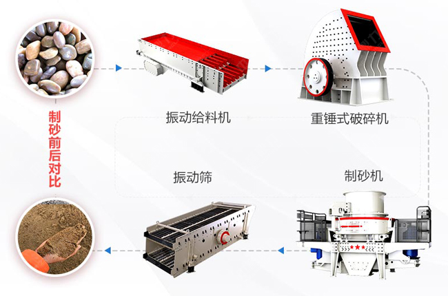 1、VSI制沙機(jī):一種工藝成熟的鵝卵石制沙機(jī),成品顆粒漂亮、銷路好;