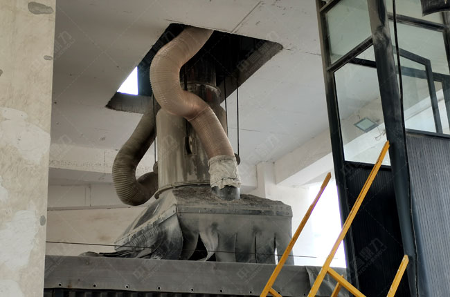 料倉自動放料裝車系統(tǒng)配用了一種砂石料無塵裝車裝置,包括卸料斗、升降控制裝、卸料筒體等,環(huán)保環(huán)節(jié)包括吸塵管、收塵器、伸縮套管等,吸料管設(shè)置在卸料筒體兩側(cè),卸料口處有皮質(zhì)吸塵罩抑塵,利于吸料管收集卸料揚(yáng)塵。